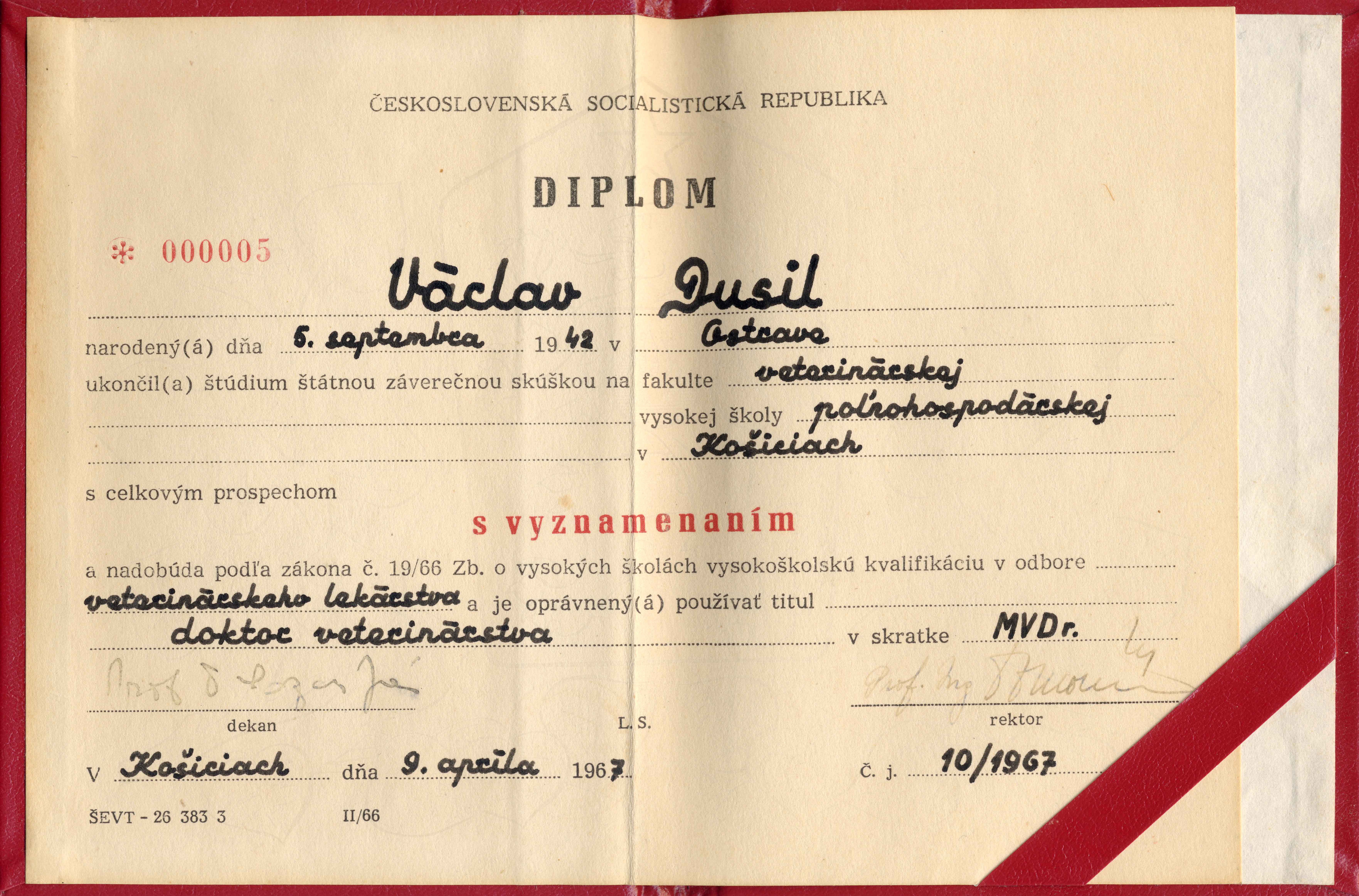 • Postscript from my Mom • 2014 October • This is Taci’s announcement of his graduation as a Doctor of Veterinary Medicine (MVDr.). This was a good example of his modesty, because he doesn’t even mention in the invitation that he graduated with honors (i.e. designated by the red diploma shown below).