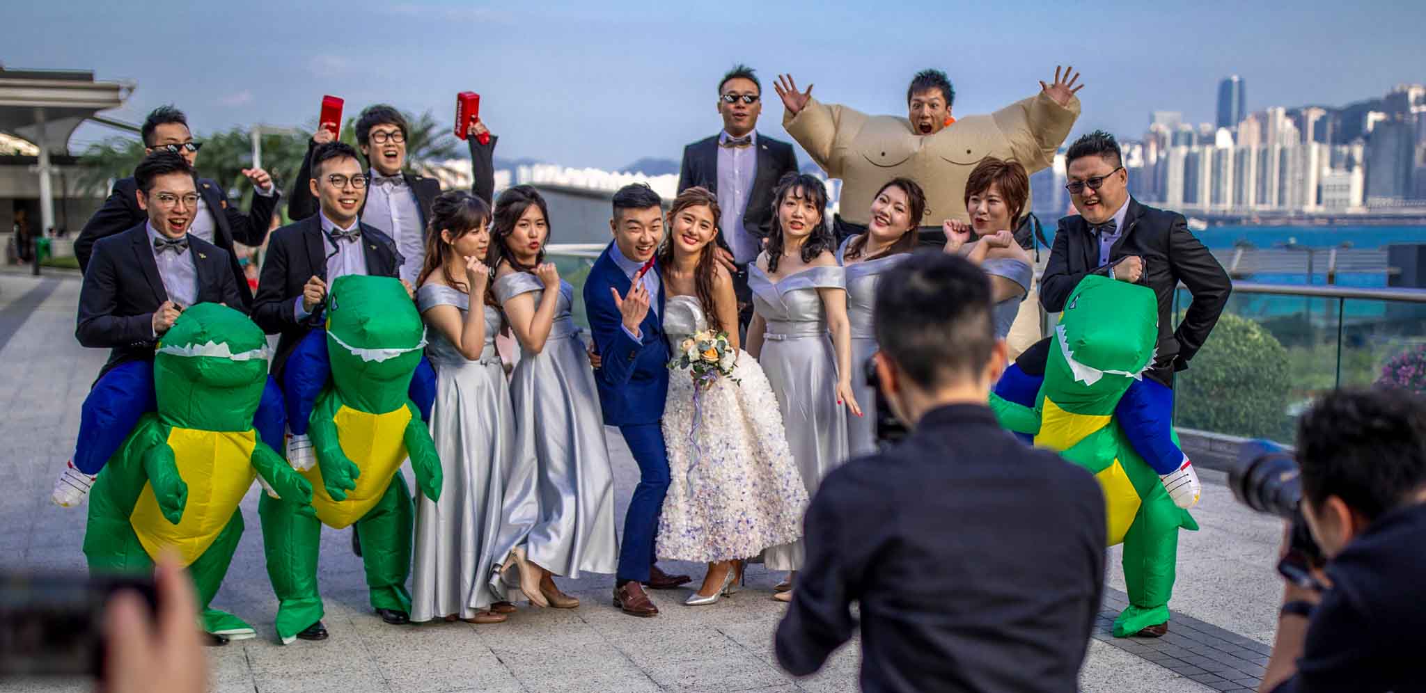 I wasn’t going to leave Hong Kong without visiting one of my childhood heroes, Bruce Lee. His statue was on Hong Kong’s Promenade, at the Avenue of Stars. Unfortunately, during my visit, his statue was covered and the area was being renovated – Bummer. But on my way there I came across a wedding party and caught this great photo.